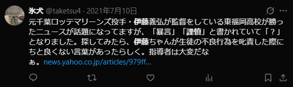 SNSの投稿によると、生徒の不良行為を叱責したときに、暴言と表現される言葉があった可能性があるようです。